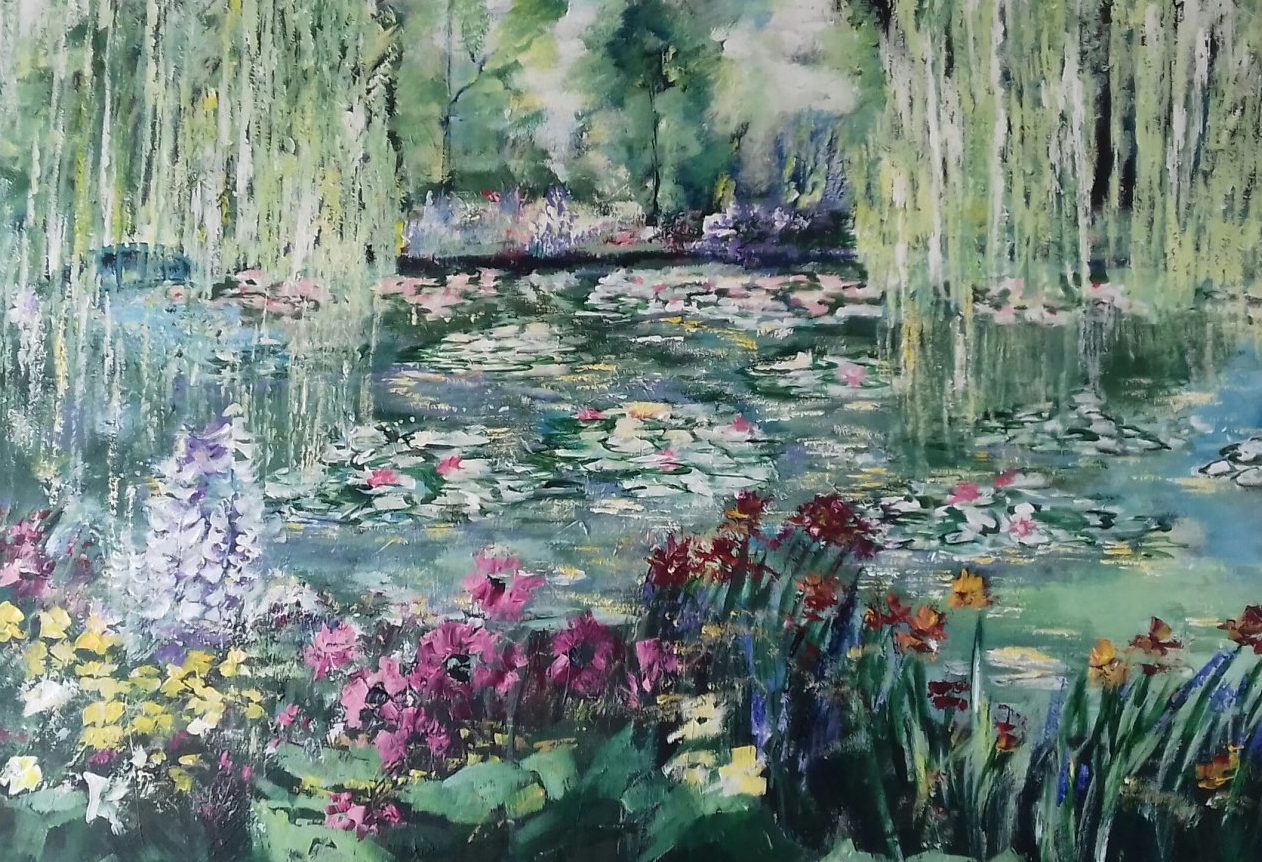 Een globale impressie van het schilderij "Tuinen van Monet" 140x120cm.