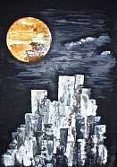 Het schilderij is een fantasie, in gegeven door de altijd schitterende volle maan!
