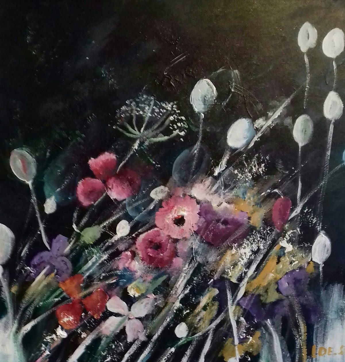 Een globale impressie van het schilderij "Wilde bloemen (2)" 45x45cm.