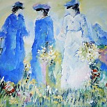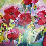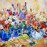 Een globale impressie van het schilderij "Feestelijk" 100x100cm.