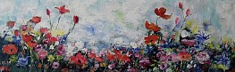 Een globale impressie van het schilderij "In de berm" 120x40cm.