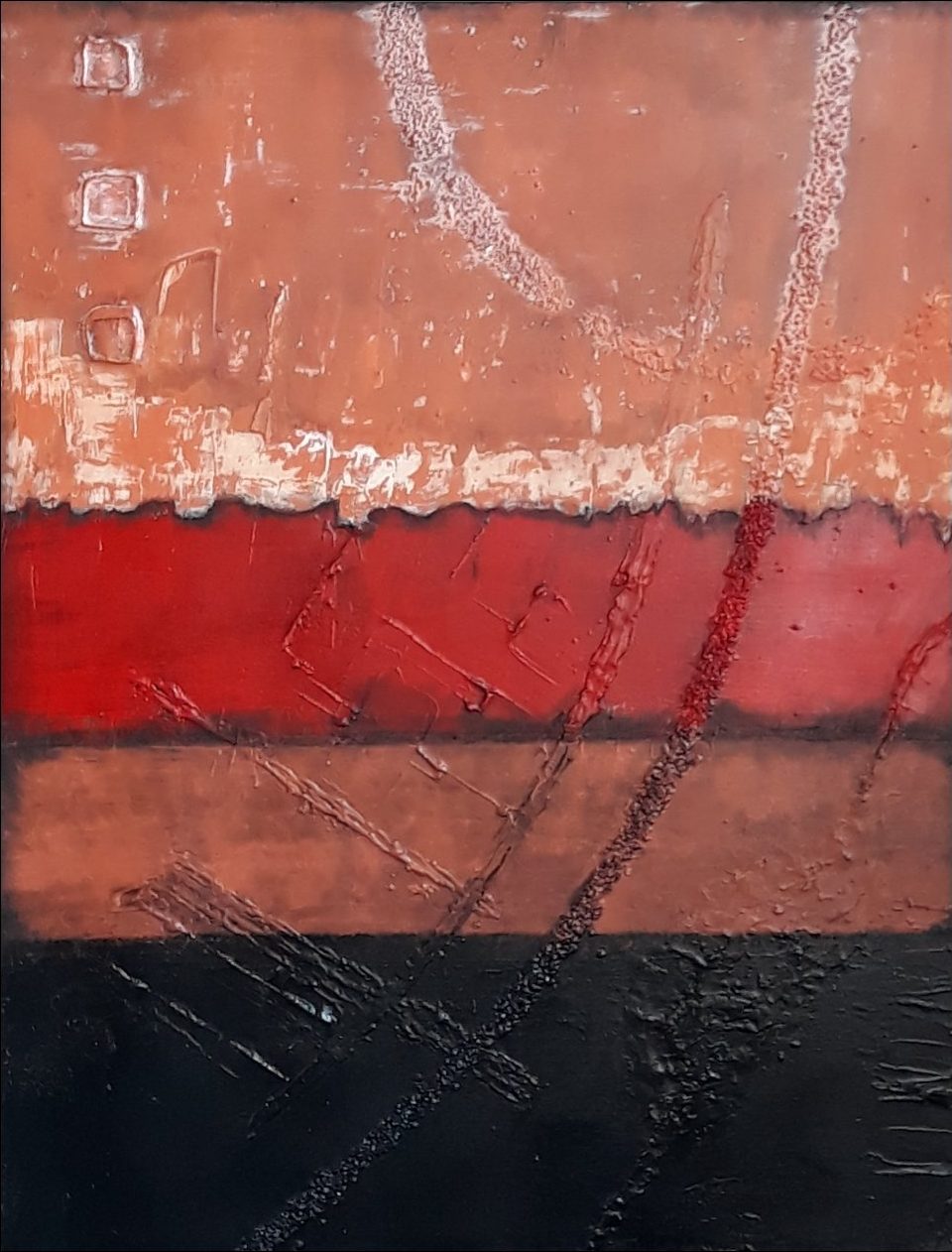 Een globale impressie van het schilderij "Other style, red-orange" 70x90cm.