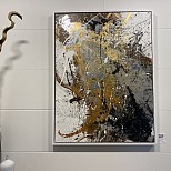 Schilderij sky explosion 3 100x120x3,5 cm. Past zeer goed in een luxe huis/ kantoor inrichting.Mixed media. Acryl op canvas 3 d doek.verwekt met glas korrels, en bladgoud en goud poeder en zwarte baklijst