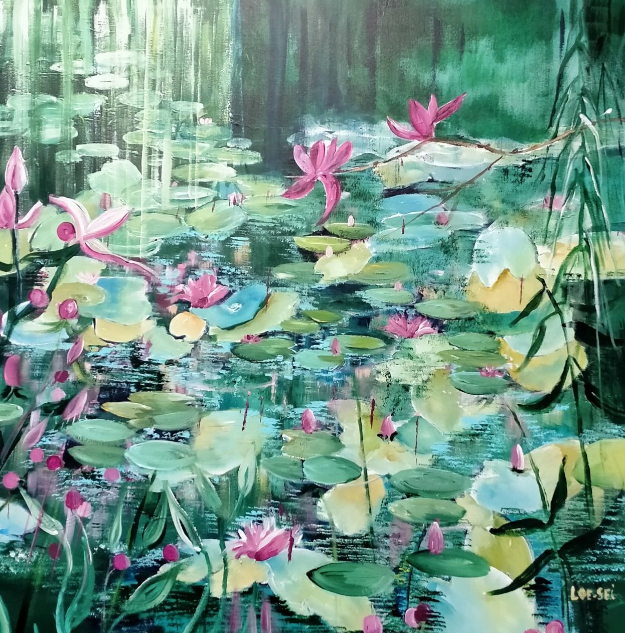 Waterlelies (geinspireerd door Monet) geschilderd door Loes Loe-sei Beks