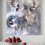 Een globale impressie van het schilderij "Energetisch blauw" 100x100cm.