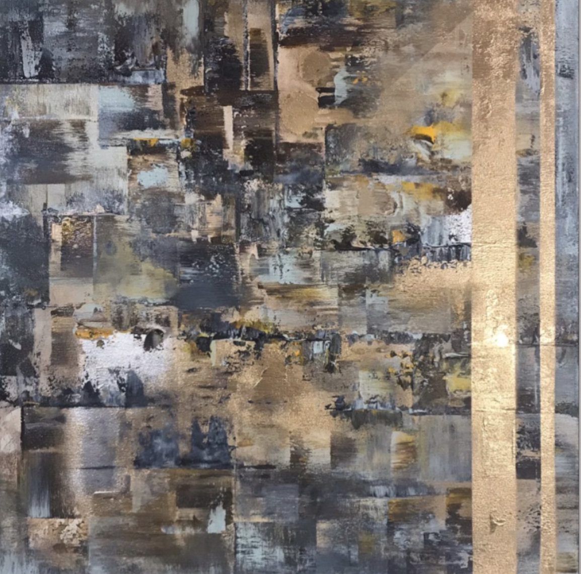 Een globale impressie van het schilderij "A rich life is a collection of precious moments" 80x80cm.