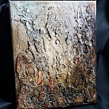 Mixedmedia schilderij.Met veel verschillende materialen heb ik dit schilderij gemaakt.