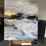 Acryl abstract werk, op canvas 3D doek. Zijkant zwart afgewerkt. Afwerking mat vernis laag.