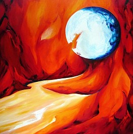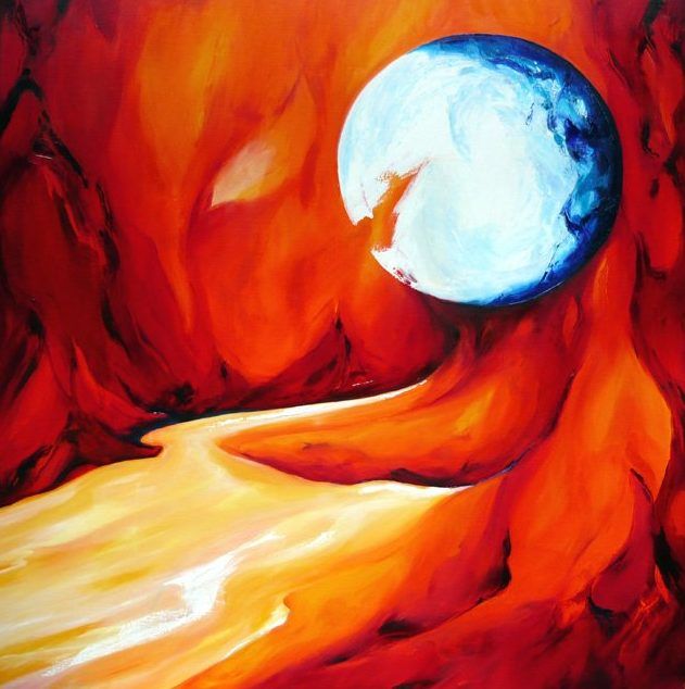 Een globale impressie van het schilderij "Earth" 120x120cm.