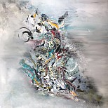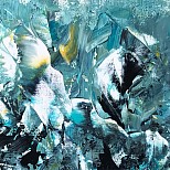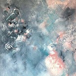 Een globale impressie van het schilderij "Space journey" 50x50cm.