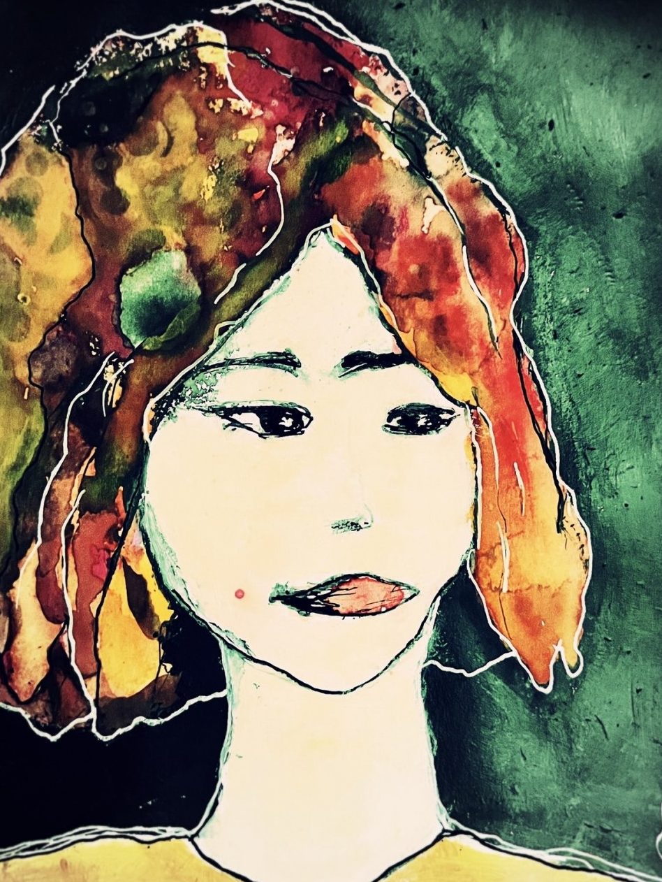 Een globale impressie van het schilderij "Portretje in groen" 30x40cm.