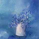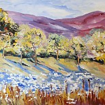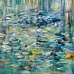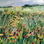 Een globale impressie van het schilderij "Prairietuin" 100x100cm.