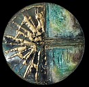 Mixmedia abstract rond schilderij.