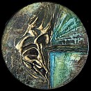 Met structuurpasta, acrylverf, crackle pasta en epoxyhars afgewerkt.