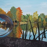 Een globale impressie van het schilderij "Peacefull mind" 90x90cm.