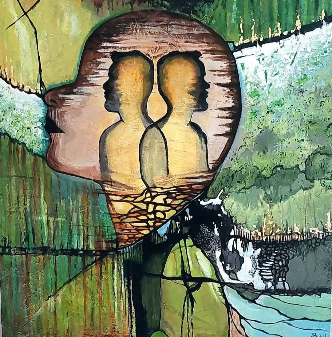 Een globale impressie van het schilderij "You in my Mind" 100x100cm.