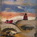 Een globale impressie van het schilderij "Omarming" 100x122cm.
