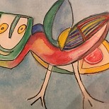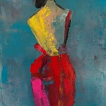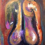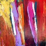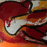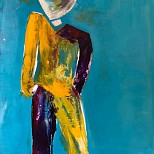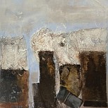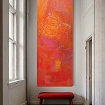Een globale impressie van het schilderij "House for Sale" 100x100cm.