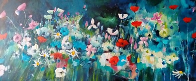 Een globale impressie van het schilderij "Veldbloemen (2)" 180x80cm.