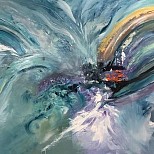 Een globale impressie van het schilderij "Flower power" 80x120cm.