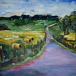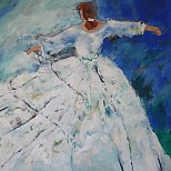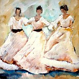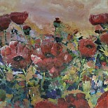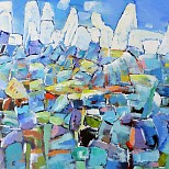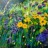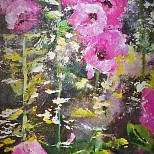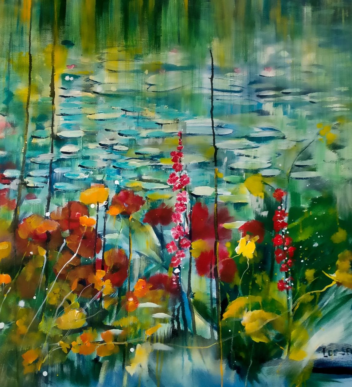 Een globale impressie van het schilderij "Waterlelies" 100x100cm.