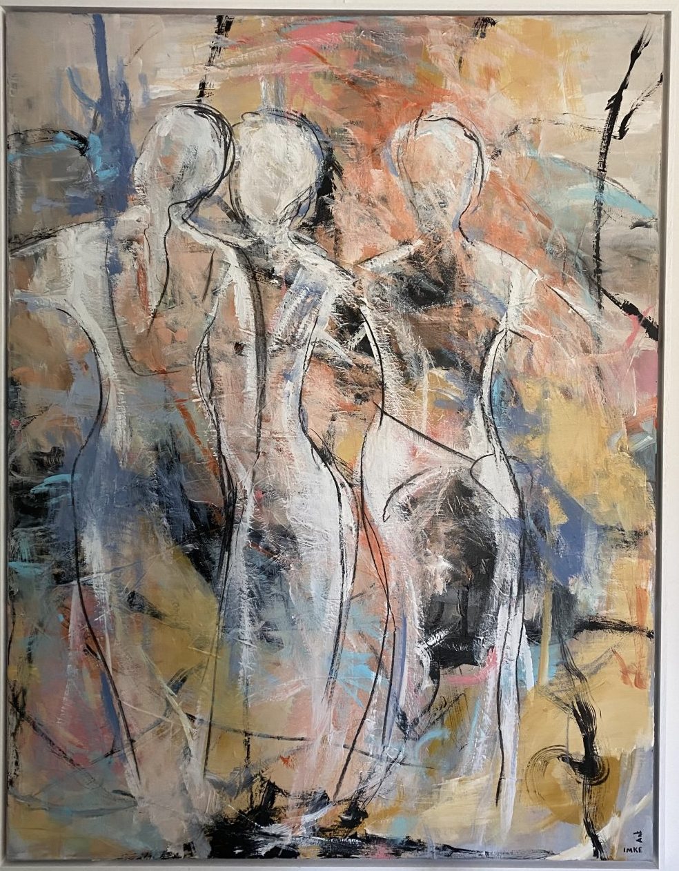 ThreeTimes a Lady. Acryl op canvas ,Incl. Witte baklijst .afgelakt met mat vernis. Incl. Ophang systeem.