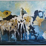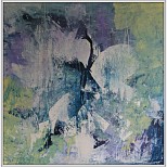 Abstracte improvisatie acryl op doek met zwart/zilverkleurige lijst