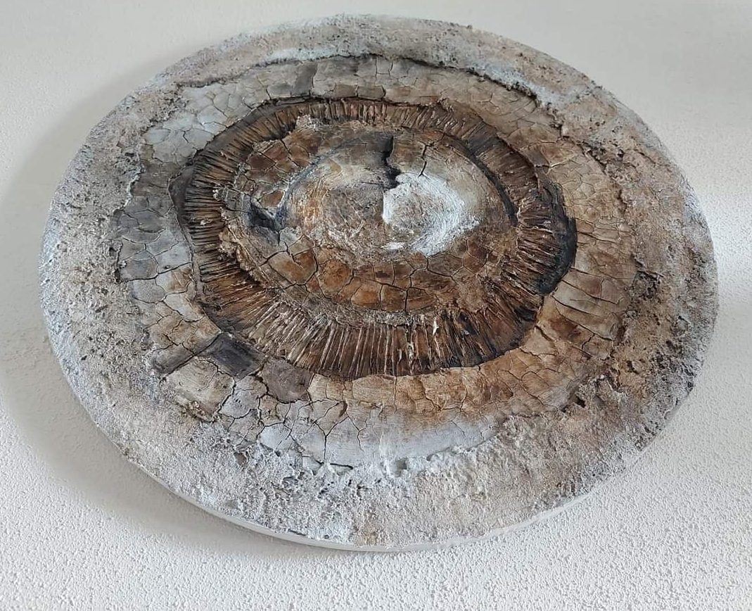 En helemaal een trend een rond schilderij met materie op je muur.