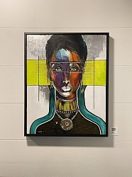 Focus. Intuïtief portret. Mixed media. Met goud en zilver blad. Acryl op canvas 3D doek. Incl. Zwarte lijst. Ophang klaar.