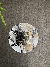 Sky explosion 8. Mixed media op rond canvas doek. Met bladgoud en glasparels. Afwerk laag vernis. Met ophang systeem.