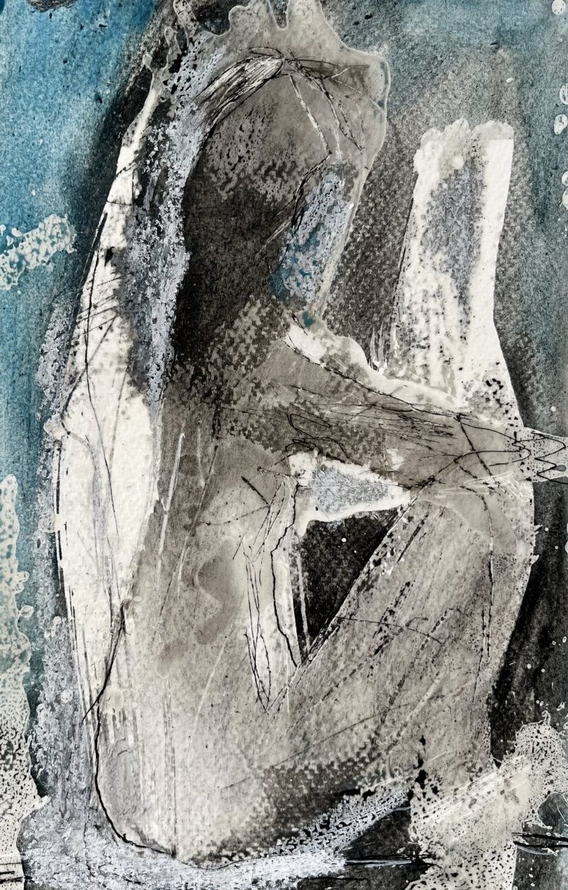 Een globale impressie van het schilderij "Figures - zittend figuur" 14,5x22,5cm.