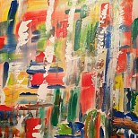 Een globale impressie van het schilderij "Symphonie" 200x50cm.