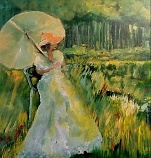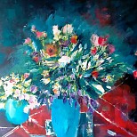 Een globale impressie van het schilderij "Romantisch" 100x100cm.