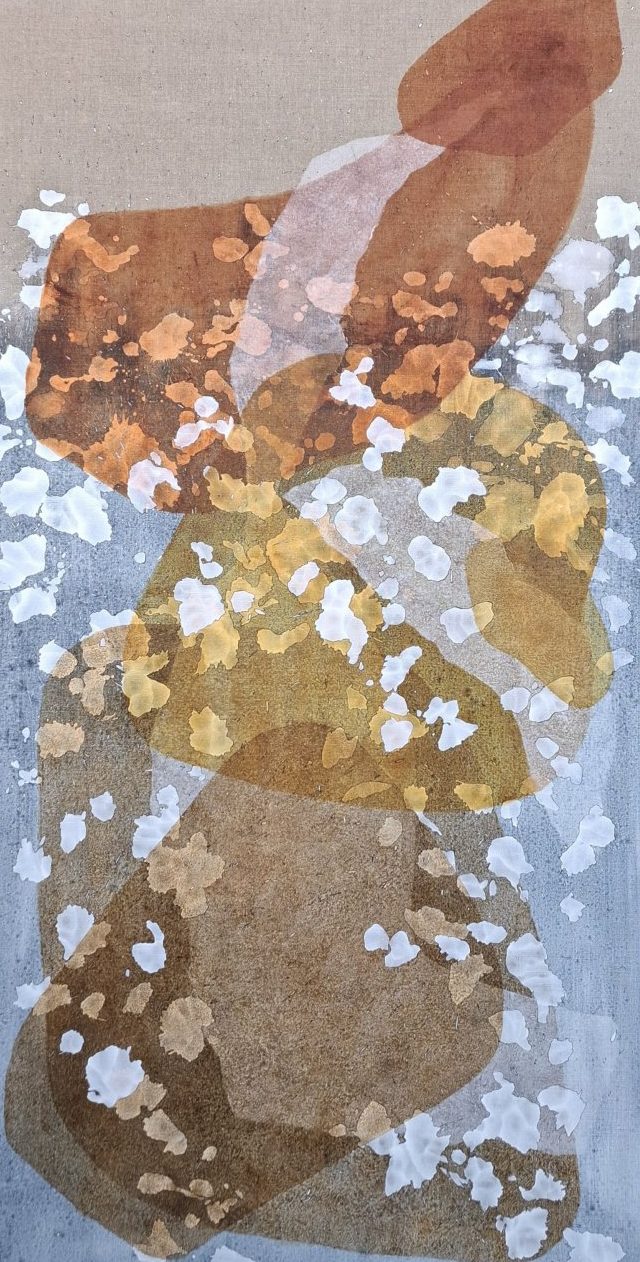 Een globale impressie van het schilderij "First movement" 80x160cm.