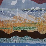 Abstract schilderij uitgevoerd in olieverf en inkt op linnen