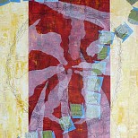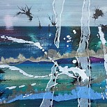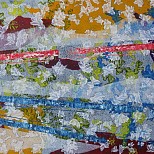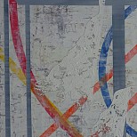 Abstract schilderij uitgevoerd in olieverf en inkt op linnen