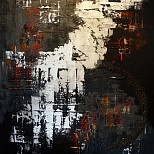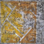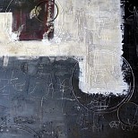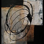 Voor mij weer eens anders, meer rechte lijnen gebruikt en meer kleur ! De brede passe-partout omlijst het schilderijtje, welke 29x29 is.