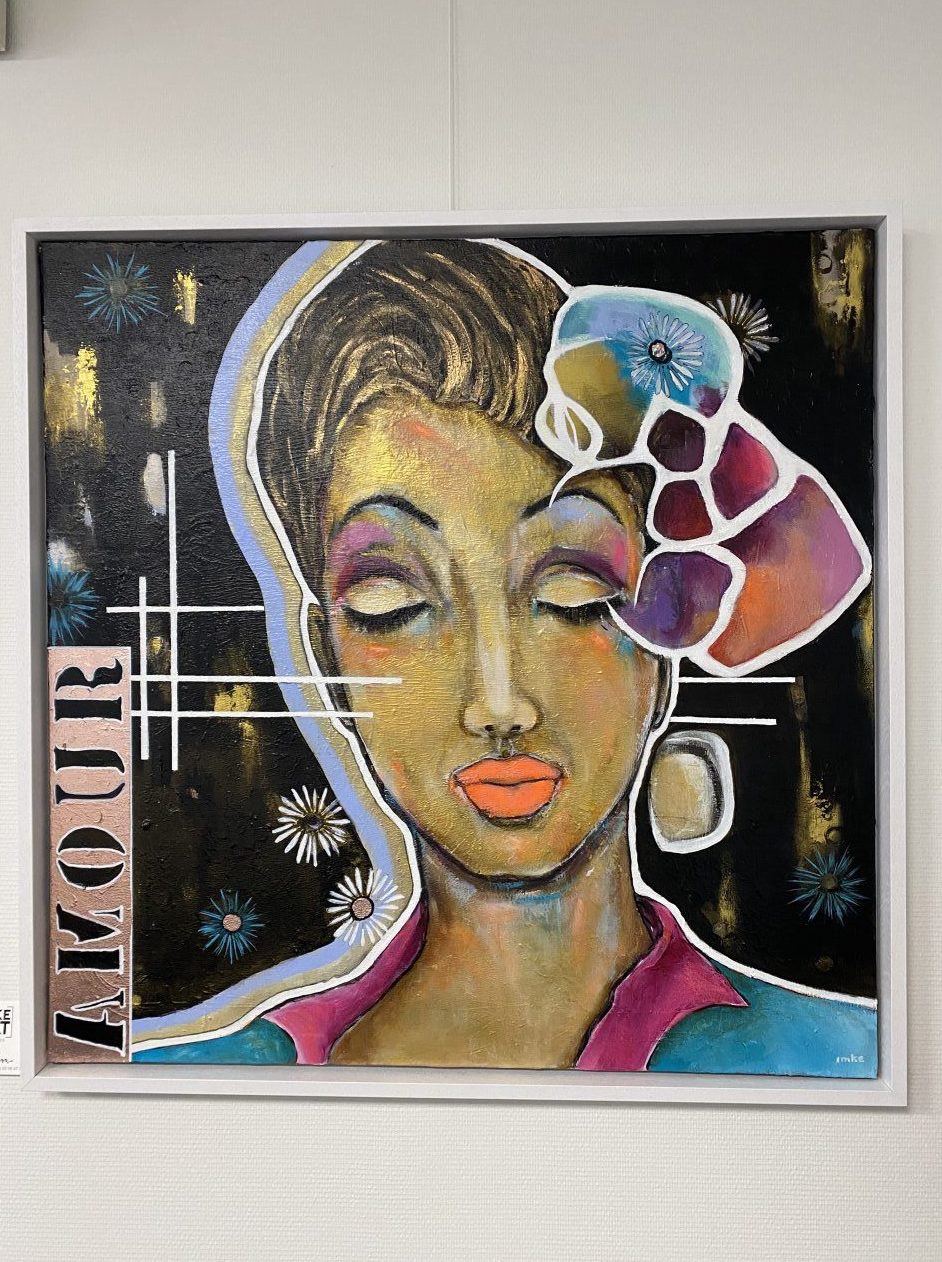 Een globale impressie van het schilderij "Amour" 105x105cm.