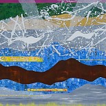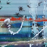 Een globale impressie van het schilderij "TO FIND TRACES........ nr. 2" 70x70cm.