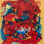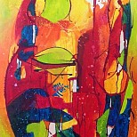 Een globale impressie van het schilderij "Party Time" 140x100cm.