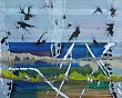 Abstract schilderij uitgevoerd in Olieverf en Inkt op Linnen
