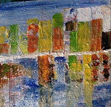 Een globale impressie van het schilderij "Ciudad por el mar" 100x200cm.