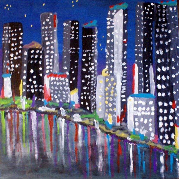 Een globale impressie van het schilderij "Skyline" 100x100cm.