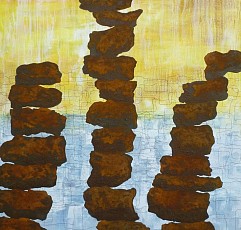 Abstract schilderij uitgevoerd in Olieverf, Inkt en "Modern Options (Rust)" op Linnen. Ingelijst (stalen baklijst) en gesigneerd.