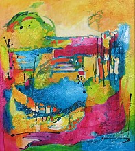 Een globale impressie van het schilderij "Dreamland" 90x100cm.