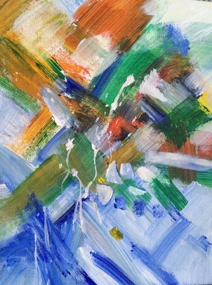 Een globale impressie van het schilderij "De uitspatting" 30x40cm.